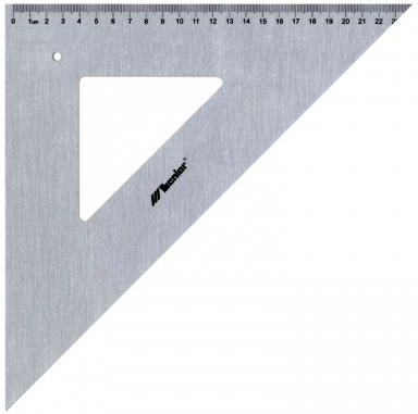 Ekierka Professional 45/45/90 wykonany z anodowanego aluminium posiada podcięcie do kreślenia tuszem nadrukowana precyzyjna podziałka 34 cm długość przeciwprostokątnej: 50cm opakowanie: etui z tworzywa