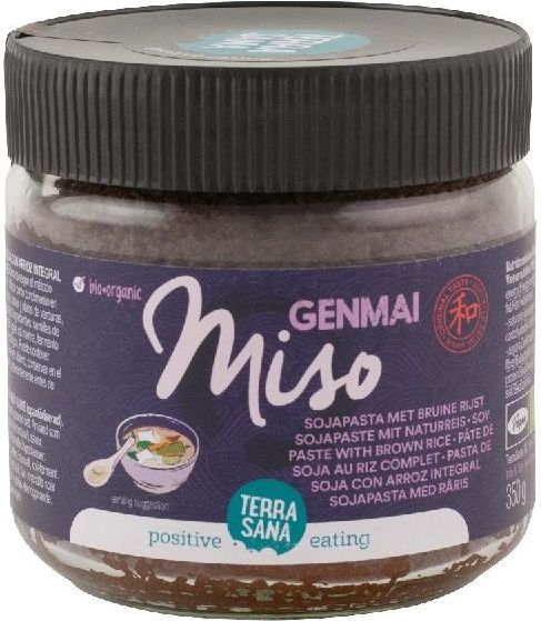MISO GENMAI (PASTA Z SOI I RYŻU BRĄZOWEGO) BIO 350 g - TERRASANA TERRASANA (kremy, makarony, sosy sojowe, SKŁADNIKInasiona SOI*, ryż brązowy*, sól morska, woda, Aspergillus Oryzae. (*certyfikowany składnik ekologiczny)OPISNiepasteryzowane miso z SOI i ryżu brązowego.WARTOŚĆ ODŻYWCZA W 100 g Wartość energetyczna - 769 kJ/183 kcal Tłuszcz - 5,8 g w tym kwasy tłuszczowe nasycone - 1,0 g Węglowodany - 19 g w tym cukry - 12 g Błonnik - 4,9 g Białko - 11 g Sól - 11 gZALECANE WARUNKI PRZECHOWYWANIA Po otwarciu przechowywać w lodówce. Kraj pochodzenia: Holandia Ilość w opakowaniu zbiorczym: 1 Wysokość opakowania jednostkowego (cm): 8.80 Głębokość opakowania jednostkowego (cm): 8.50 Masa netto (g): 350 Gwarantowany termin przydatności (w dniach): 60 Szerokość opakowania jednostkowego (cm): 8.50 Producent: TERRASANA (kremy. makarony. sosy sojowe. inne) Bez Cukru: BEZ CUKRU (w składnikach) CERTYFIKAT BIO: CERTYFIKAT BIO Kraj pochodzenia składników (słownik BP): Japonia WEGAŃSKI: WEGAŃSKI WEGETARIAŃSKI: WEGETARIAŃSKI BEZ GLUTENU (w składnikach): BEZ GLUTENU (w składnikach) PRODUCENT / DYSTRYBUTOR - NAZWA I ADRES: TERRASANA NATUURVOEDING B.V.. WAAIER 10. 2451 LEIMUIDEN