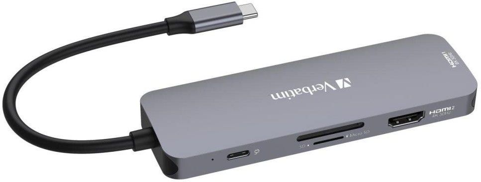 Verbatim Hub USB Multi Port CMH-08: 1x USB-C PD, 3xUSB-A 3.0, 2xHDMI, SD/microSD (32151) Łęczyca