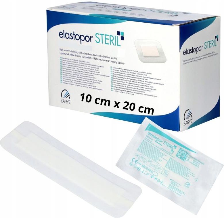 Zarys Elastopor Steril 10cm x 20cm Opatrunek Jałowy Z Wkładem Chłonnym 25szt. Łęczyca