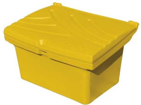 Pojemnik na piasek i sól (80l / 120kg) - w jednej paczce mieści się do 6 szt. pojemników.Pojemność(l)80Pojemność(kg)100MateriałPolietylenDługość(mm)770Głębokość(mm)580Wysokość(mm)440Typ zamknięciamiejsce na kłódkęPokrywadwuwarstwowaKoloryżółty, zielony, czerwony, niebieski, szaryPojemniki przeznaczone są do składowania piasku z solą lub innych środków jak np. sorbent. Są pomocne w sprawnym posypywaniu chodników i ulic. Stosowane również na stacjach benzynowych. Estetyczny wygląd i funkcjonalność sprawia, iż bez przeszkód można je ustawiać na przystankach autobusowych i tramwajowych, na parkingach samochodowych, stacjach kolejowych i w miejscach ruchu pieszych.Cechy:* Opcjonalnie pojemniki 0d 360kg mogą być wyposażone w otwór w przedniej ścianie ułatwiający wybieranie piasku łopatą.* Pojemniki produkowane są z oryginalnego polietylenu LLD-PE DOWLEX 2432.10 firmy DOW PLASTICS o podwyższonej twardości i odporności na uderzenia. Dzięki zastosowaniu oryginalnego tworzywa mamy całkowitą pewność, że surowiec nie zawiera szkodliwych związków i metali ciężkich, które mogą wystąpić w tworzywie z recyklingu.* Tworzywo firmy DOW PLASTICS ma wszystkie europejskie dopuszczenia do kontaktu z żywnością.* Wykazują dużą odporności na działanie kwasów, zasad, soli i większości związków chemicznych.* Są odporne na działanie promieniowania UV, nie blakną na słońcu, nie pękają i nie korodują.* Bardzo mocna konstrukcja zawiasów (wewnętrzne zbrojenie stalowe zalane polietylenem) umożliwia ustawienie pojemnika pod ścianą i wygodne podniesienie klapy do pozycji otwartej jak również pełne otwarcie i obrócenie klapy na tył. Metalowe elementy zawiasów wykonane są ze stali nierdzewnej.* Są przystosowane do transportowania przy pomocy wózka widłowego.* Pojemniki produkowane są w różnych kolorach i rozmiarach.* Stosowane przez nas barwniki to pigmenty organiczne firmy Grafe. Nie zawierają metali ciężkich takich jak kadm.* Na życzenie mogą być wyposażone w skobel z blachy nierdzewnej.* W 100% podlegają recyklingowi.Gwarancja 5 lat - nie obejmuje uszkodzeń mechanicznych powstałych po uderzeniach....