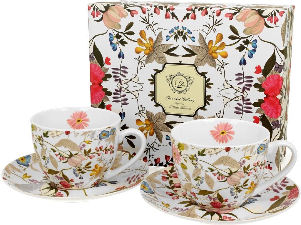 Elegancki komplet dwóch filiżanek ze spodkami z kolekcji White by William Kilburn wchodzący w skład serii Art Gallery to niezwykle piękna porcelana. Całościowo wykonany w naturalnym kolorze z delikatnym połyskiem, który nada charakteru i funkcjonalności w codziennym użytkowaniu. Charakteryzuje się nowoczesnym zdobieniem przedstawiający motyw delikatnych, pastelowych kwiatów, eterycznych liści oraz gęstwiny gałązek na stonowanym na białym tle. Wykonany z wysokiej jakości porcelany New Bone China z idealnie dopracowanym wykończeniem. Łatwy w utrzymaniu czystości, odporny na zarysowania. Produkt zapakowany w ozdobne pudełko dekorowane tym samym motywem. Kwiatowe i botaniczne wzory stanowiące kompozycję kwiatów, liści, paproci, korzeni czy wodorostów to typowy ornament charakterystyczny dla kolekcji White by William Kilburn. Jest to doskonały pomysł na niebanalny prezent urodzinowy dla każdego. Można używać w kuchence mikrofalowej oraz myć w zmywarce. Specyfikacja: Średnica filiżanki: 9 cm Wysokość filiżanki: 7 cm Średnica spodka: 15,4 cm Pojemność filiżanki: 280 ml Materiał wykonania: Porcelana Kolor: Biały z ornamentem roślinnym Producent: Duo