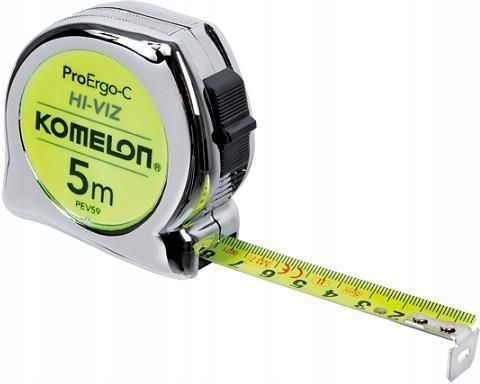 Miara 5m zwijana Komelon [PEV59], ProErgo-C HI-VIZ: stalowa miara o długości 5 m, taśma miernicza jest wyposażona w odblaskową warstwę HI-VIZ, która ułatwia dokładny pomiar przy słabym oświetleniu, podziałka na taśmie mierniczej została nadrukowana dwustronnie, co ułatwia wykonywanie pomiarów, …