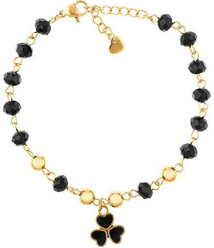 BRANSOLETKA PACIFIC SS-047-G1 damska bransoletka w kolorze złoto czarnym. Zawieszka koniczynka. W komplecie woreczek prezentowy producenta. Materiał: Stal nierdzewna. Kolorystyka: Kolor czarno złoty. Wymiary: Obwód wewnętrzny: 23 cm