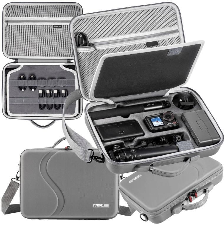 Etui transportowe STARTRC do kamer sportowych ✨ Kompatybilność: DJI Action 5 Pro | Action 4 | Action 3 ⭐️ Najważniejsze cechy ⭐️ ✔️ Duża pojemność – zmieścisz kamerę, uchwyty, etui ładujące, filtry, karty pamięci i wiele więcej. ✔️ Wysokiej jakości materiały – wytrzymała skóra PU i podwójna warstwa lycry zapewniają ochronę przed wodą, kurzem i zarysowaniami. ✔️ Zintegrowana wyściółka – zapobiega przemieszczaniu się sprzętu, chroniąc go przed wstrząsami i tarciem. ✔️ Wnętrze z dopasowaną pianką – idealne dopasowanie do kamery i akcesoriów gwarantuje stabilność i bezpieczeństwo. ✔️ Centralna przegroda izolacyjna – zabezpiecza akcesoria przed wzajemnym ocieraniem. ✔️ Lekka i przenośna konstrukcja – wyposażona w uchwyt oraz regulowany pasek na ramię. ✔️ Wygodne użytkowanie – podwójny zamek i ergonomiczna powierzchnia poprawiają komfort trzymania i obsługi. ☑️ Pełna ochrona i porządek w każdej podróży! Szukasz etui, które pomieści nie tylko kamerę, ale także wszystkie akcesoria? STARTRC oferuje idealne rozwiązanie – torbę zaprojektowaną z myślą o DJI Action 5 Pro, 4 i 3. Świetnie sprawdzi się zarówno w terenie, jak i podczas podróży czy codziennego użytkowania. ☑️ Praktyczne rozwiązania ☑️ Pojemność i funkcjonalność ☑️ Szerokie zastosowanie Etui STARTRC to niezastąpiony towarzysz podczas każdej aktywności w terenie. Doskonale sprawdzi się w trakcie wypraw outdoorowych, nagrań w podróży czy codziennego vlogowania. Dzięki przemyślanej konstrukcji i wysokiemu poziomowi ochrony, kamera DJI OSMO Action 5 Pro / 4 / 3 oraz wszystkie niezbędne akcesoria są zawsze uporządkowane i gotowe do użycia – gdziekolwiek się znajdujesz. ✔️ Aktywności na świeżym powietrzu ✔️ Mobilne nagrywanie i podróże ✔️ Tworzenie treści i fotografia w terenie ☑️ Zawartość zestawu ✔️ 1x Etui ochronne STARTRC ✔️ 1x Regulowany pasek na ramię ⚙️ Specyfikacja Model: 1151756 Kompatybilność: DJI Action 5 Pro / Action 4 / Action 3 Kolor: Szary Materiał: Skóra PU + podwójna lycra Wymiary produktu: 32,5 x 24,5 x 7,5 cm Wymiary opakowania: 33,0 x 25,0 x 7,8 cm Waga netto: 665 g Waga brutto: 810 g Pasek na ramię: TAK (regulowany)