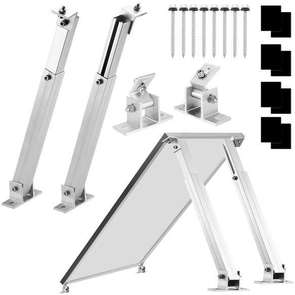 System montażowy paneli fotowoltaicznych 30-60 stopni regulowany, do dużych paneli Zestaw dwóch wsporników Dwa wsporniki maja zastosowanie przy montażu paneli fotowoltaicznych na dachach czy pionowych ścianach. Wymiary i dowolność ustawienia kąta nachylenia w zakresie 30-60 stopni dają praktycznie nieograniczone możliwości przy montażu.Specyfikacja techniczna:W zestawie znajduje się: - 2x noga regulowana w zakresie 70-131cm - 2x regulowane mocowanie do podłoża - 8x podkład gumowy - 8x śruba ze stali nierdzewnejZAPRASZAMY