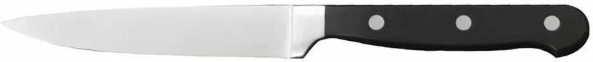 Nóż uniwersalny z linii JUSTCUT marki TOM-GAST to wszechstronne narzędzie, które idealnie sprawdza się przy krojeniu różnorodnych produktów, takich jak mięso, wędliny, warzywa i owoce. Dzięki dłuższemu i węższemu ostrzu zapewnia precyzyjne cięcie, jednocześnie zachowując łatwość użytkowania w codziennych zadaniach kuchennych. Wykonany ze stali nierdzewnej, nóż charakteryzuje się solidną konstrukcją, głownia i trzon zostały wykute na gorąco z jednego kawałka stali, dzięki temu nóż jest nie tylko wyjątkowo trwały, ale także odporny na korozję. Cechy produktu Materiał: Wysokiej jakości stal nierdzewna. Twardość ostrza: 52-54 HRC, zapewniająca trwałość i odporność na ścieranie. Solidna konstrukcja: Głownia i trzon kute z jednego kawałka stali. Broda noża: Gwarantuje idealny balans, zwiększając precyzję cięcia. Ergonomiczna rękojeść: Wykonana z wytrzymałego tworzywa sztucznego, montowana na trzy solidne stalowe nity. Łatwość utrzymania czystości: Można myć w zmywarce. Nóż uniwersalny JUSTCUT marki TOM-GAST to niezbędne narzędzie w każdej kuchni, które łączy funkcjonalność, solidność i komfort użytkowania, idealnie nadając się zarówno do codziennych, jak i bardziej wymagających zadań kulinarnych.