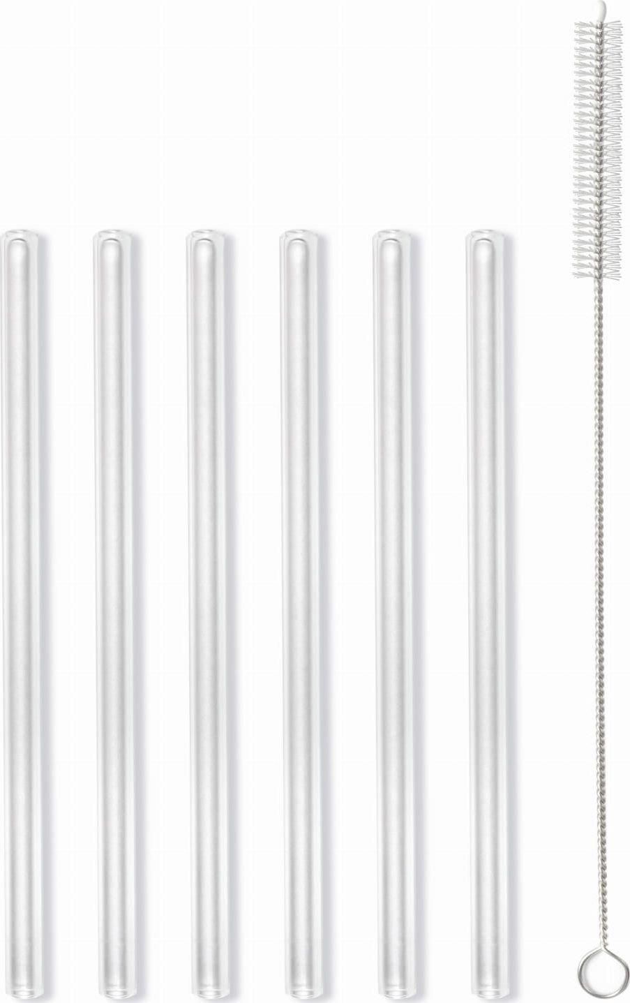 Vialli - 6 słomek szklanych prostych, transparentych 15cm 6582 Vialli Design Szklane Słomki 6szt. 15cm + szczoteczka Szklane słomki to alternatywa dla jednorazowych, wykonanych z tworzywa słomek. Ich użytkowanie pozwala realnie zmniejszyć ilość produkowanego plastiku i generowanych odpadów! Wykonane są z wysokiej jakości szkła boro-krzemowego, wolnego od metali ciężkich i BPA. Nie pozostawiają metalicznego posmaku, nie reagują z żadnymi płynami, oraz są hipoalergiczne. Co ważne, można bez obaw myć je w zmywarce! W zestawie znajduje się także praktyczna szczoteczka ułatwiająca czyszczenie. SPECYFIKACJA: Długość: 15 cm Średnica: 8 mm