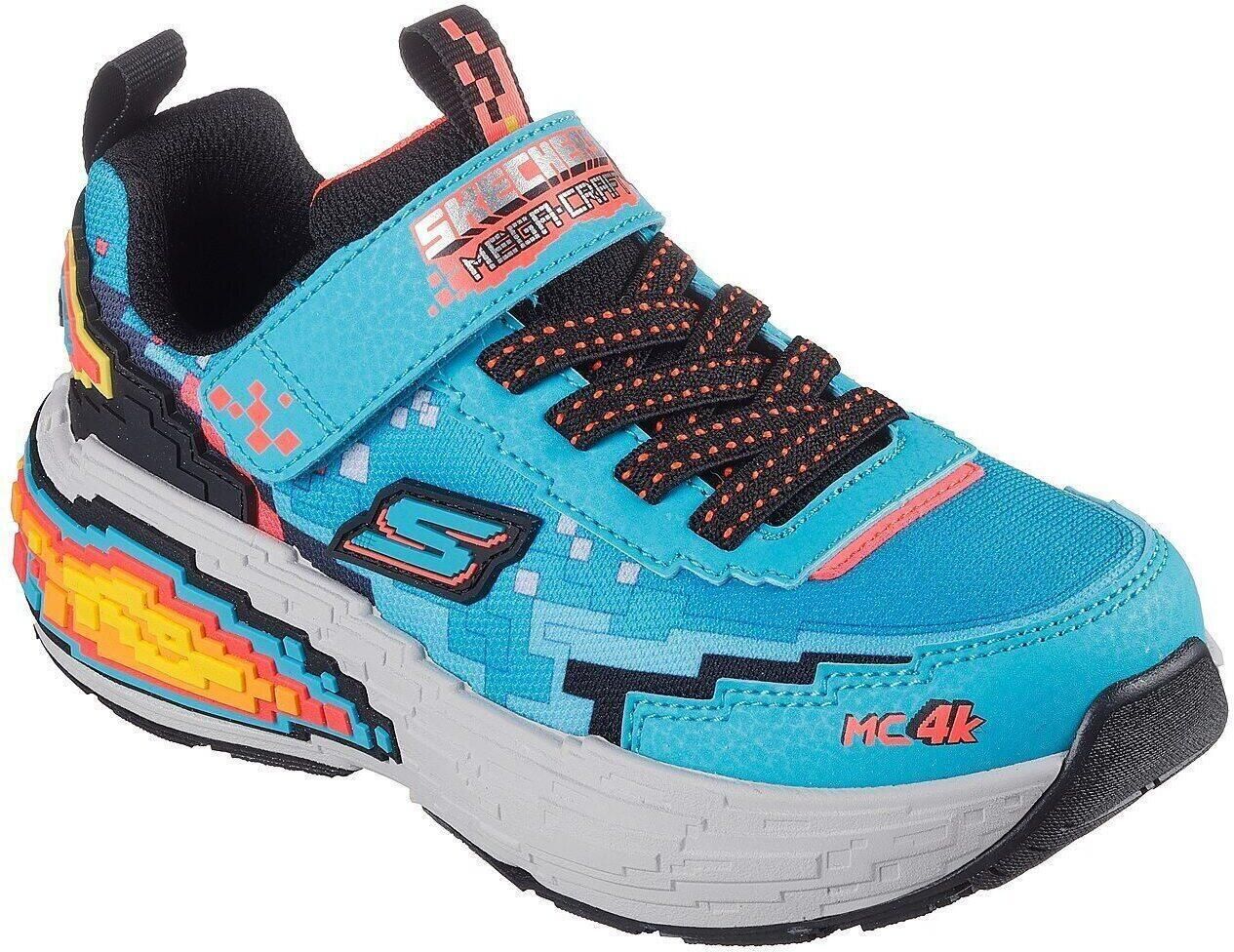 Buty Skechers Mega-Craft 4K Jr 402160L Właściwości Model Skechers Mega-Craft 4K to kolorowe sneakersy, które przenoszą świat gier do rzeczywistości. Inspirowane pikselową grafiką 4K, przyciągają wzrok wyjątkowym designem. Cholewka z materiałów tekstylnych i syntetycznych zapewnia przewiewność i trwałość, a miękka wkładka oraz elastyczna podeszwa gwarantują wygodę przy każdym kroku. Turkusowo-czarna kolorystyka z geometrycznym nadrukiem sprawia, że buty wyróżniają się w tłumie – idealne do szkoły, na plac zabaw czy spacer po mieście.
