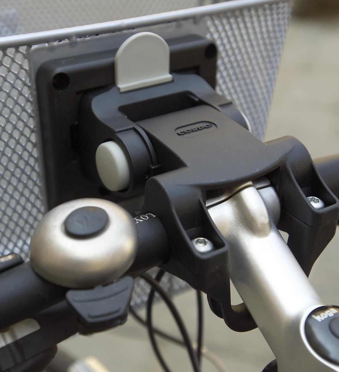 Uchwyt mocowania torby, koszy na kierownicy. System Click&Go może być wykorzystywany do kilka produktów.