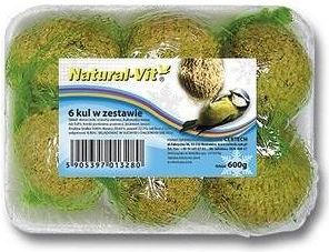 Natural-Vit Kule zimowe 90g tacka 6szt Kule zimowe dla ptaków żyjących na wolności to mieszanina nasion oleistych, zbóż oraz tłuszczy uformowana w kulę z wygodną siateczką do zawieszania. Waga jedna kula - 90 g opakowanie - 540 g Dlaczego warto wybrać tę karmę? Stanowi smaczny i pożywny posiłek dla …