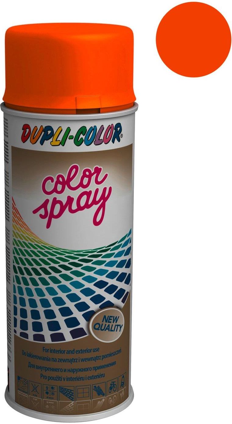 Dupli-Color Lakier ColorSpray pomarańczowy 400 ml Syntetyczny lakier dekoracyjny Color Spray może być stosowany do różnego rodzaju powierzchni z drewna, metalu, aluminium, szkła, betonu, kartonu, papieru, eternitu, porcelany i tworzyw sztucznych. Doskonale sprawdza się przy dekoracji domu wewnątrz …