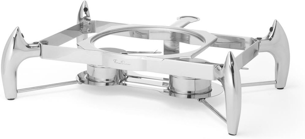 Rama do podgrzewaczy indukcyjnych 473061, 473412 Rama ze stali AISI 201 o grubości: 2,7 mm Stały (nieregulowany) uchwyt na paliwo 2 pojemniki na paliwo z uchylnym elementem regulującym wielkość płomienia Wspornik zapobiegający przewróceniu do tyłu Nóżki zakończone gumowymi stopkami Przystosowana do …
