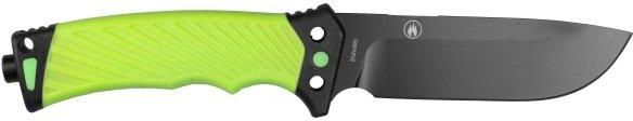 Nóż o stałej klindze Ganzo G8012V2-LG SKU:6972591190368 OPIS PRODUKTU Nóż survivalowy Ganzo G8012 to kompleksowe narzędzie zapewniające szereg funkcji przydatnych w terenie. Wszechstronny profil głowni drop point gwarantuje możliwość zarówno wygodnej pracy w drewnie jak i wygodę podczas przygotowywania pożywienia. Ergonomiczna rękojeść w kontrastowym kolorze zapewni nam natomiast komfort w trakcie pracy oraz łatwe odnalezienie noża po upadku na glebę. Zintegrowane z pochewką krzesiwo, przecinak do taśm oraz osełka zagwarantują nam natomiast wsparcie w zróżnicowanych awaryjnych scenariuszach. Nóż survivalowy Ganzo G8012 oferuje użytkownikowi: Wszechstronną głownię o profilu drop point wykonaną z nierdzewnej stali 8Cr13 Podcięcie na grzbiecie głowni umożliwiające sprawne korzystanie z krzesiwa Ergonomiczny chwyt oraz ricasso pozwalające na wygodne uchwycenie noża Obszerny jelec oraz teksturowanie chwytu gwarantujące bezpieczną obsługę Wystającą stalową głowicę na końcu chwytu służącą za awaryjny młotek Wielofunkcyjną, polimerową kaburę zapewniającą szereg dodatkowych narzędzi Zintegrowany przecinak do taśm pozwalający na bezpieczne rozcięcie pasów Miniaturową osełkę pozwalającą na szybkie przywrócenie nożowi ostrości Krzesiwo umożliwiające nam awaryjne rozpalenie ognia nawet po zamoczeniu Głownia noża Ganzo G8012 została wykonana ze stali 8Cr13 charakteryzującej się wysoką odpornością na korozję. W połączeniu z możliwością łatwego naostrzenia sprawia to, że model doskonale sprawdzi się w roli noża survivalowego. Uniwersalny profil głowni typu drop point z wydatnym brzuchem gwarantuje nożowi dobre właściwością tnące. Dla wyeliminowania odblasków głownia została pokryta czarną powłoką, dodatkowo uodporniająca nóż na rdzewienie. Możemy jednak zauważyć, że pewien obszar grzbietu pozostał odsłonięty - jest to podcięcie, które umożliwi nam wygodne korzystanie z krzesiwa. Nóż survivalowy Ganzo G8012 V2 - najnowsza wersja wszechstronnego narzędzia do pracy w terenie Na uwagę zasługuje tutaj przede wszystkim pochewka oraz zintegrowane z nią narzędzia. Na końcu pochewki umieszczony został przecinak do taśm, który pozwoli nam bezpieczenie rozciąć pasy samochodowe w sytuacji awaryjnej. Usytuowana nieco wyżej diamentowa osełka umożliwia szybkie przywrócenie ostrości krawędzi tnącej. Osadzone na przedzie pochewki krzesiwo umożliwi nam we współpracy z nożem rozpalenie ognia - niestraszne mu również zamoczenie, dzięki czemu będziemy mieli gwarancję, że nie zawiedzie nas w najbardziej nieoczekiwanym momencie. DANE TECHNICZNE: Profil głowni Drop Point Twardość stali [HRC] 57-58 Typ noża stała klinga - full tang​ Typ stali nierdzewna - 8Cr13MoV Materiał pochewki nylon, tworzywo sztuczne Materiał rękojeści polimer Odporność na korozję średnia Odporność na stępienie średnia Pochewka jest Typ szlifu płaski Zastosowanie (przeznaczenie) outdoor Długość całkowita [mm] 243 Długość głowni [mm] 113 Grubość głowni [mm] 5 Masa [g] 349