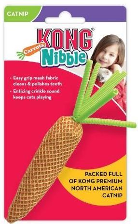KONG Nibble Carrots to pokryta siateczką zabawka czyszcząca zęby kota, w kształcie marchewki. Z dodatkiem kocimiętki dla lepszej zabawy. Ta mała, śmieszna marchewka, po brzegi wypełniona kocimiętką sprawi, że Twój kot zostanie zapalonym rolnikiem. Wytrzymała siateczka, którą pokryto wierzch …