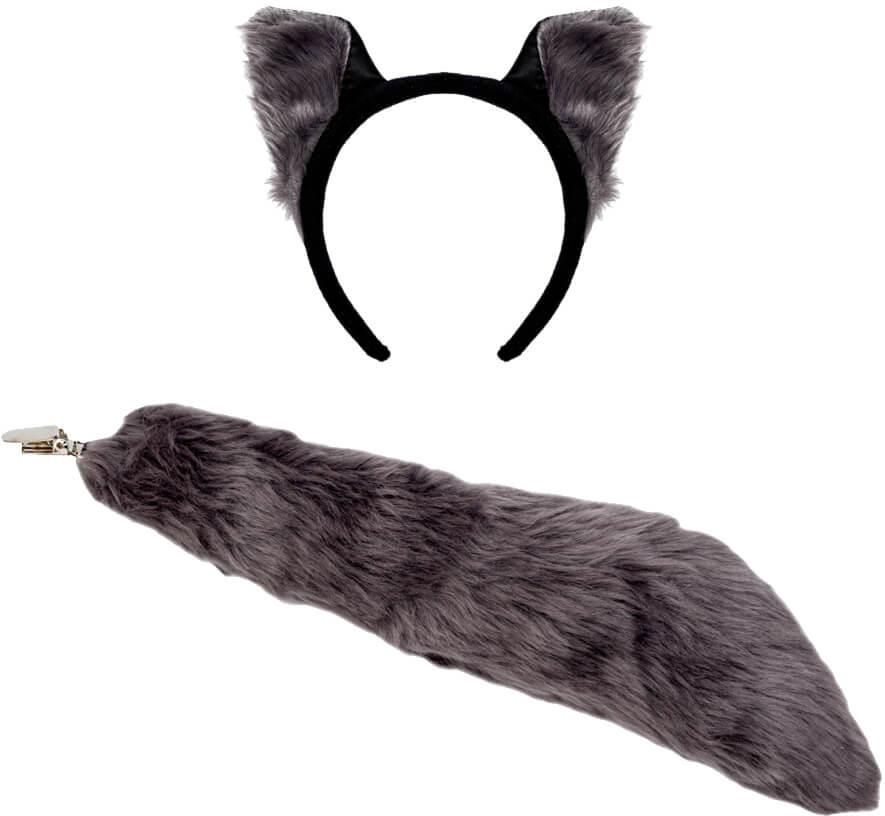 Zestaw Wilk Szary: ogon, opaska Zestaw składa się i ogona. Czapka z tyłu ma gumeczkę dzieki czemu dopasuje się do każdej głowy. Ogon ozdobiony futrem ze szlufką. Rozmiar uniwersalny