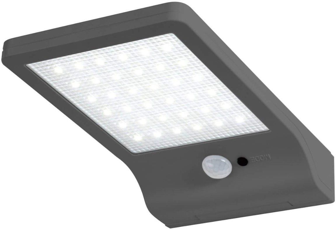 Naświetlacz LED 3W 320lm 4000K Srebrny z Czujnikiem ruchu i zmierzchu LEDVANCE DOORLED Solarny Lampa Solarna LED Naświetlacz z czujnikiem wykrywania ruchu i ŚWIATŁA dziennego renomowanej w branży oświetleniowej firmy LEDVANCE z serii DOORLED SOLAR to nowoczesne oświetlenie, które cechuje się bardzo dobrą jakością emitowanego ŚWIATŁA. Profesjonalne wykonanie oraz wykorzystanie najnowszej technologii LED sprawia, że prezentowana Lampa spełni swoje zadanie nawet w najtrudniejszych warunkach. Lampa wyposażona w baterie litowo-jonową, dzięki ładowaniu baterii poprzez panel słoneczny Lampa stanowi niezależne źródło światłą. Naświetlacz o mocy 3W i strumieniu świetlnym na poziomie 320lm emituje neutralną barwę ŚWIATŁA o temperaturze barwowej 4000K. Kompaktowe wymiary, mała waga produktu i wysoki stopień ochrony przed warunkami atmosferycznymi (IP44), pozwala na łatwą instalację w w dowolnym miejscu gdzie docierają promienie ŚWIATŁA dziennego. Cechy produktu: Oprawy oświetleniowe LED do użytku zewnętrznego zasilane energią słoneczną Ładowanie baterii poprzez panel słoneczny Technologia baterii: litowo-jonowa Czas ładowanie baterii minimum 7 godzin, w zależności od położenia produktu i ekspozycji na światło słoneczne Lampa IDEALNIE SPRAWDZA SIĘ JAKO OŚWIETLENIE: Podjazdów Wejść Garaży Miejsca, w których nie jest dostępne zasilanie sieciowe Produkt wykonany został z wysokiej jakości materiałów, zapewniających jego długotrwałą żywotność i satysfakcję z zakupu. Kupując u nas otrzymujesz nowy, oryginalnie zapakowany produkt, objęty 3-letnią gwarancją producenta. Tylko zakup markowych produktów gwarantuje wysoką jakość, energooszczędność, bezpieczeństwo użytkowania oraz pewność, że informacje umieszczone na opakowaniach będą zgodne z prawdą.