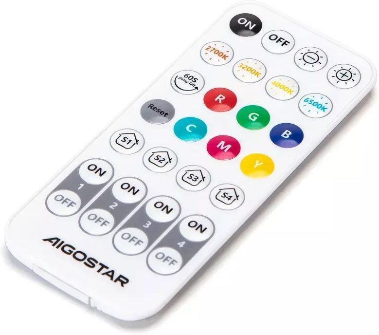 Proste sterowanie inteligentnym oświetleniem w twoim domu. Sterowanie barwą światła, kolorem, ściemnianiem oraz możliwość zgrupowania źródeł światła. Pilot przewidziany do współpracy z oświetleniem z serii Bluetooth MESH obsługiwanych przez aplikację AigoSmart. Umożliwia szybką i poręczną obsługę lamp, żarówek plafonów z serii MESH. Typ baterii/akumulatora: CR2032 Kolor produktu: Biały Wymiary: L54*W123*H8mm Napięcie: DC3V Środowisko: Wewnątrz Temperatura działania: -5℃~40℃ pojemność akumulatora.: 210mAh Certyfikat: CE,RoHS Łączy się z oświetleniem bez pośrednio i szybko. Obsługa z pilota jest praktycystyczna i dużo szybsza niż z aplikacji. Obsługuje do czterech pojedynczych żarówek i/lub ich grup. Podstawowe funkcje w formie wydzielonych dedykowanych przycisków.
