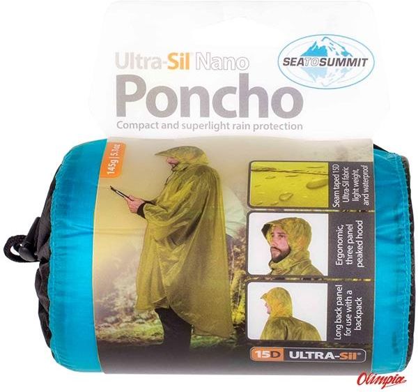 Peleryna przeciwdeszczowa Sea To Summit Ultra-Sil Nano to synonim turystycznej funkcjonalności, który docenisz, gdy pogoda ulegnie załamaniu. Przypadnie to do gustu miłośnikom minimalistycznych wędrówek, gdy każdy gram jest na wagę złota, ale spisze się on także jako opcja awaryjna. Idealne na wędrówki, do jazdy na rowerze, kajaki, co nadaje mu sporo outdoorowej wszechstronności. Sprawia to, że wybierając go raz, zyskasz partnera wielu różnych aktywności, który zawsze będzie Cię wspierać swoją wodoodpornością. Peleryna przeciwdeszczowa Sea To Summit Ultra-Sil Nano jest w całości wykonana z nylonu. Jednak nie jest to klasyczna jego odmiana, a opracowany przez tę markę 15D Ultra-Sil®. Jego gęstość wynosi 15 Denierów, więc jest on mniej podatny na przetarcia, czy przypadkowe uszkodzenia, co na szlaku jest ważne. Jednak jego główną zaletą jest wodoodporność na poziomie 1200 H2O. Ta w zupełności wystarczy podczas trekkingu, gdy dopadła Cię niespodziewana ulewa. Wspierane jest to przez podklejenie szwów oraz powłokę z poliuretanu. Dzięki temu peleryna przeciwdeszczowa Sea To Summit Ultra-Sil Nano zapewni odpowiednią ochronę przed przemoczeniem, które mogłoby pokrzyżować Twoje outdoorowe plany. Ma także kaptur, którego profil sprzyja zachowaniu niczym nieograniczonego pola widzenia, a jednocześnie chroni głowę przed deszczem. SZCZEGÓŁY PRODUKTU Peleryna przeciwdeszczowa wykonana z wytrzymałego i lekkiego materiału 15D Ultra-Sil®; Wodoodporność 15D Ultra-Sil® wynosi 1200 mm H2O, co w zupełności wystarczy na trekkingach; 15D Ultra-Sil® to wytrzymały nylon o gęstości 15 Denierów i niskiej podatności na przetarcia; Powłoka PU spowalnia namakanie tego modelu; Dla wsparcia wodoodporności ten model ma podklejone szwy; Dłuższy krój z tyłu ułatwia naciągnięcie peleryny na plecak; Kaptur zapewnia dobrą widoczność; Materiały: 100% nylon 15D; Zajmuje mało miejsca w plecaku czy sakwie, co jest jego dodatkowym atutem.