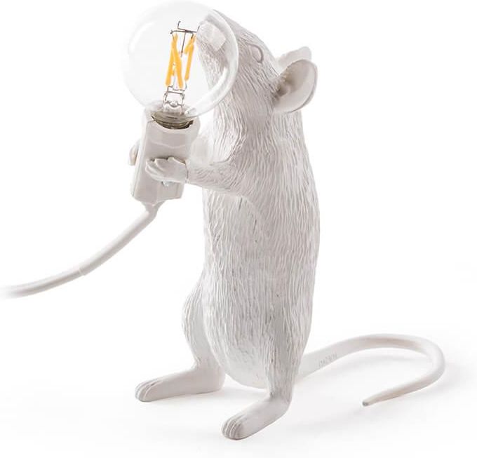 Mouse Lamp - stojąca projektu MARCANTONIO RAIMONDI MALERBA dla SELETTI Kolekcja lamp Mouse to kolejna po serii Monkey seria lamp producenta Seletti wpisująca się w unikatowy, animalistyczny design. Stojąca lampa Mouse Lamp w oryginalny sposób oświetla wnętrze oraz nadaje nietuzinkowy klimat pomieszczeniu. Wykonana została z żywicy, trwałego materiału, który umożliwia różnorakie zastosowanie lamp serii Mouse. Jest dostępna również w dwóch innych wariantach: siedzącej oraz leżącej. Typ żarówki jest dowolny, w komplecie z lampą dołączana żarówka LED 2W E12 LED WYMIARY: - Wysokość: 14,5 cm, - Szerokość: 6,2 cm x 8,1 cm KOLOR: biały MATERIAŁ: żywica ŹRÓDŁO ŚWIATŁA: LED 2W E12 LED (dołączona) DŁUGOŚĆ PRZEWODU: USB 2,4m z włącznikiem Projektant: MARCANTONIO RAIMONDI MALERBA Producent: SELETTI