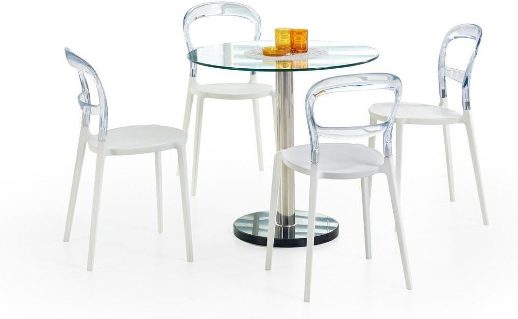 Efektowny stół do jadalni Ten piękny stół do jadalni to idealne rozwiązanie dla osób, które cenią sobie elegancję i wygodę podczas posiłków. Jego okrągły kształt oraz średnica 80 cm sprawiają, że jest idealny dla 4 osób, co pozwala na przyjemne i swobodne spożywanie posiłków w gronie rodziny czy przyjaciół. Wykonany z wysokiej jakości szkła oraz stali chromowanej, ten stół jest nie tylko trwały, ale również bardzo stylowy. Blat z bezbarwnego szkła dodaje lekkości i przestrzeni, a stal chromowana oraz marmurowe elementy nadają mu eleganckiego wyglądu. Stół do jadalni ma wysokość 74 cm, co pozwala na wygodne siedzenie przy nim. Nie jest rozkładany, co oznacza, że nie trzeba martwić się o jego stabilność podczas użytkowania. Ponadto, ma tylko jedną nogę, co pozwala na swobodne przemieszczanie się wokół niego. Kolorystyka stołu to czarny i chrom, co nadaje mu nowoczesnego wyglądu. Dzięki temu, pasuje do wielu rodzajów wnętrz i stylów aranżacji. Jest to idealny wybór dla osób, które cenią sobie styl, jakość oraz wygodę. Co musisz wiedzieć przed zakupem? Stół jest idealny do małych jadalni, ponieważ ma rozmiar 4-osobowy i zajmuje niewiele miejsca Materiały użyte do produkcji stołu (szkło, stal chromowana, marmur) są trwałe i eleganckie Blat stołu wykonany z przezroczystego szkła dodaje przestrzeni i lekkości pomieszczeniu
