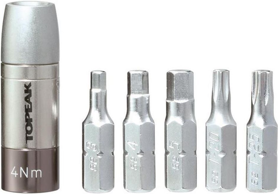 Ten ustawiany zestaw (4 Nm / 5 Nm / 6 Nm) będzie działać z każdym mini narzędziem posiadającym klucz imbusowy 5 mm (lub pojedynczym kluczem imbusowym 5 mm) aby zastosować prawidłową wartość momentu obrotowego na dokręcanych śrubach w celu zapobiegnięcia uszkodzeniom kosztownych części z karbonu. Etui do przechowywania jednej z głowic 4 Nm (5 Nm lub 6 Nm) oraz 5 najpopularniejszych końcówek (3/4/5 mm hex i T20 / T25 Torx). Końcówki imbusowe: 3 / 4 / 5 mm Końcówki TORX®: T20 / T25 Materiał narzędzi: Hartowana stal Etui: Wysokiej jakości tworzywo Dodatki: Etui Rozmiar: 5.4 x 5 x 2.2 cm Waga: 75 g