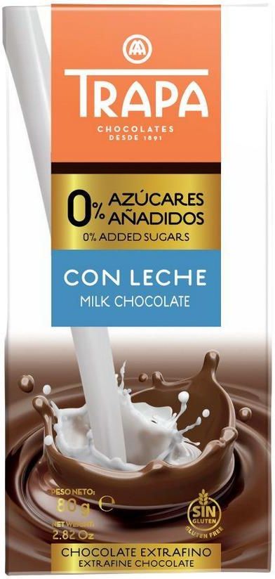 OPIS Czekolada mleczna bezglutenowa bez dodatku cukru 80 g Trapa Linia czekolad bezcukrowych marki TRAPA słodzona jest maltitolem – słodzikiem należącym do grupy polioli (inne poliole to przykładowo ksylitol i erytrytol). W porównaniu do cukru białego ma znacznie niższy indeks glikemiczny, co z pewnością docenią osoby z cukrzycą lub insulinoopornością. Jego kaloryczność określa się na poziomie 40% niższym od cukru białego, więc stanowi dobrą alternatywę dla osób dbających o linię lub starających się zrzucić nadprogramowe kilogramy. Chocolates TRAPA to hiszpański producent czekolad z ponad 120 letnim doświadczeniem. Czekolady marki TRAPA znane są zarówno w Hiszpanii jak i w wielu krajach europejskich, arabskich oraz w Ameryce Południowej. SKŁADNIKI Substancja słodząca (maltitol), tłuszcz kakaowy, pełne mleko w proszku, miazga kakaowa, masło, emulgator (lecytyna sojowa), aromat. Masa kakaowa minimum 30%. Zawiera naturalnie występujące cukry. Nadmierne spożycie może mieć działanie przeczyszczające. Bez glutenu. Alergeny: Zawiera nabiał i soję. Może zawierać orzechy. Wartość odżywcza w 100g: Wartość energetyczna 1916 kJ / 463 kcal Tłuszcz 32 g w tym kwasy nasycone 20 g Węglowodany 58 g w tym cukry 6,7 g + 50 g poliole Białko 5,2 g Sól 0,13 g PRZECHOWYWANIE Przechowywać w chłodnym i suchym miejscu. Chronić przed zapachami i bezpośrednim działaniem promieni słonecznych. Idealna temperatura przechowywania: 14-21ºC.