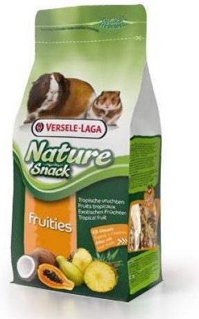 VERSELE LAGA Nature Snack FRUITIESPrzysmak uzupełniający z owocami dla królików i gryzoniOpis produktu:SNACK NATURE SNACK to zdrowa i smaczna przekąska dla wszystkich gryzoni i królikówStanowi idealne uzupełnienie codziennej diety w minerały, substancje odżywcze, witaminyDostarcza witamin A, D3, E.Przysmak FRUITIES jest mieszanką egzotycznych owoców: ananasa, papai, moreli, winogrona i kokosa.Stymuluje kondycję, witalność i jest bardzo smaczny.Mieszanka jest bardzo lubiana przez zwierzęta, łatwa do połykania i lekkostrawna.Jest idealną przekąską dla królików oraz roślino- i wszystkożernych gryzoni.Stosowanie i skład:Skład:Owoce (morela 7%, ananas 7%, papaja 7%), produkty pochodzenia roślinnego, warzywa, nasiona, roślinne ekstrakty białkowe, minerały, oleje i tłuszcze, FOS, nagietek, MOS, algi, jukkaDodatki/kg:Witamina A 5450 JM, witamina D3 654 JM, witamina E 40 mg, 3b103 (żelazo) 54 mg, 3b202 (jod) 1 mg, E4 (miedź) 5 mg, 3b502 (mangan) 40 mg, 3b603 (cynk) 38 mg, E8 (selen) 0,1 mgDawkowanie:Podawaj w niewielkich ilościach, jako uzupełnienie i urozmaicenie codziennego jadłospisu opartego na podstawowej karmie Nature.Zapewniaj także siano Nature Timothy Hay, ważny składnik kompletnej podstawowej diety królika, świnki morskiej, szynszyli i koszatniczki.