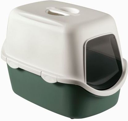 Kryta kuweta dla kota. Ścianki zapobiegają rozsypywaniu się żwirku oraz zanieczyszczeniu najbliższego otoczenia przez kota. Kuweta z tworzywa o podłużnym kształcie Posiada uchylne drzwiczki oraz filtr zamontowany w górnej pokrywie, który oczyszcza powietrze i niepozwala wydostawać się nieprzyjemnym zapachą na zewnątrz kuwety, Kuweta jest wyposażona w uchwyt do przenoszenia. dzięki swojemu kształtowi zajmuje niewiele miejsca i pozwala maksymalnie wykorzystać wolne miejsce w pomieszczeniu (łazience, przedpokoju itp.) Oddzielny spód kuwety umożliwia czyszczenie i wymianę żwirku). Łopatka do wybierania nieczystości na wyposażeniu kuwety. Produkt najwyższej jakości wykonana z nietoksycznego plastiku, produkt trwały i wytrzymały, Wymiar: 56x40x40cm