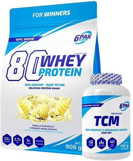 6Pak Nutrition Zestaw Whey Protrein 908G + Tcm 120 Tab Legnica