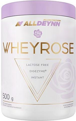 ALLNUTRITION Wheyrose 500 g Suplement diety Smak wanilia jagoda i żurawina PEŁNOWARTOŚCIOWA ODŻYWKA BIAŁKOWA DLA BUDOWY MIĘŚNI WSPARCIE TRAWIENIA Z BRANDOWĄ FORMUŁĄ DIGEZYME® WSPOMAGA ZDROWIE KOŚCI NIE ZAWIERA LAKTOZY 16 PORCJI W OPAKOWANIU ALLDEYNN WHEYROSE to pełnowartościowe białko do picia, z …