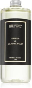Cereria Molla - Zapas do dyfuzora 500ml. Amber and Sandalwood Zapas do dyfuzorów zapachowych Cereria Mollá, - zapach bursztynu i drzewa sandałowego: ● nuty głowy: nuty korzenne, gałka muszkatołowa, cytryna, ● nuty serca: nuty drzewne, cedr, ● nuty bazy: słodkie i drzewne nuty, piżmo, skóra, …