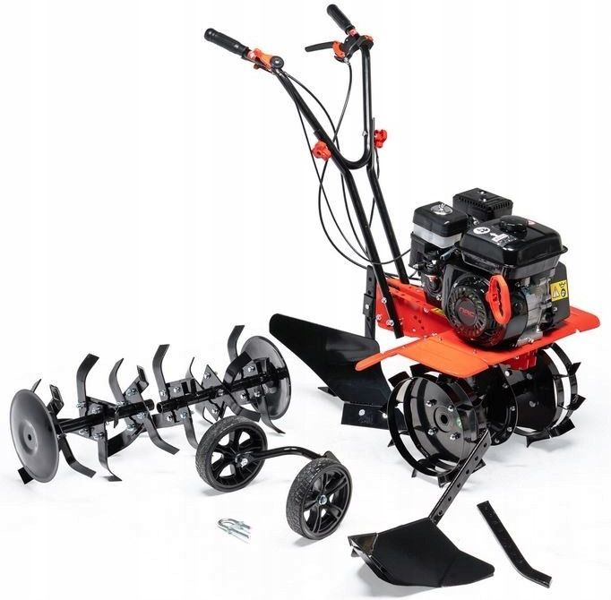 Masywna, mocna glebogryzarka spalinowa z silnikiem o pojemności aż 212 cm3 i mocy znamionowej 2,5 kW. Maksymalna szerokość pracy wynosi 85 cm. Glebogryzarka wyposażona w 1 bieg do przodu i 1 bieg do tyłu. W skład urządzenia wchodzą: 2 koła metalowe, pług, radło NAC TIP85-212-S-NO Typ silnika: spalinowy, czterosuwowy, górnozaworowy Producent silnika: NAC Model silnika: QL170F Pojemność silnika: 212 cm3 Znamionowa moc silnika: 2,5 kW Maksymalna szerokość robocza: 85 cm Maksymalna głębokość robocza: 35 cm Ilość gwiazd roboczych: 6 (3+3) Ilość noży pielących: 24 Bieg do przodu: tak Bieg wsteczny: tak Tarcze boczne chroniące rośliny: tak Ilość kół podporowych: 2 z tyłu Waga: 48 kg W standardowym wyposażeniu glebogryzarki znajdują się oryginalny karton, komplet rączek prowadzących, komplet śrub montażowych, komplet nakrętek montażowych, komplet podkładek montażowych, komplet motylków do rączek, 2 duże koła podporowe, stalowe tarcze boczne systemu roboczego zabezpieczające rośliny przed zasypywaniem ziemią, zestaw narzędzi montażowych, 6 kompletów hartowanych gwiazd roboczych, instrukcja obsługi w języku polskim. W skład urządzenia wchodzą: 2 koła metalowe, pług, radło Idealny sprzęt do pracy w ogrodzie!⭐⭐⭐⭐⭐ Cechy i funkcje Wielozadaniowość i funkcjonalność Genialna maszyna dla Twojego ogrodu Glebogryzarka spalinowa NAC TIP85-212-NO to urządzenie niezwykle zaawansowane technologicznie, ktore każdy entuzjasta pracy w ogrodzie pokocha od pierwszego wejrzenia. Praca w ogrodzie powinna być przyjemnością. Jeśli on sam stanowi dla Państwa oazę spokoju, miejsce wypoczynku, jest źródłem kontaktu z naturą, nie powinien kojarzyć się z ciężką, obciążająca zdrowie i pochłaniającą zbyt dużo czasu pracą. Najwyższe wymagania Przekonująca jakość Dzięki innowacyjnej technologii, wysokowydajny, niezawodny silnik NAC z serii QL170F cechujący się dużą mocą znamionową 2,5 kW i pojemnością aż 212 cm3 można uruchomić szybko i łatwo. Dodatkowo, dzięki technologii OHV z zaworami znajdującymi się u góry, oferuje on niesamowitą sprawność, co widać w większej mocy oraz niższym spalaniu i zużywaniu się. Żeliwna tuleja cylindra oferuje dodatkową integralność i trwałość, zapewniając odporność na zużycie i nadmierną eksploatację z jednoczesną usprawnioną kontrolą oleju. Widoczne doświadczenie Ergonomiczna praca Specjalnie ukształtowane noże spulchniające, w połączeniu z mocnym silnikiem, gwarantują wydajne przygotowanie gleby - część robocza posiada 6 gwiazd roboczych, hartowanych noży tnących osadzonych na obrotowym wale, które samoczynnie wgryzają się w glebę. Sercem tego urządzenia jest zestaw potężnych rotorów, które wprawione w ruch, rozbijają ruchem obrotowym nawet duże bryły ziemi, pozostawiając za sobą podłoże idealnie przygotowane pod wysiew roślin ogrodowych. Urządzenie jest niezastąpione do spulchniania i wyrównania powierzchni gleby. Wydajna glebogryzarka NAC TIP85-212-NO znajdzie zastosowanie zarówno w nowo urządzanym ogrodzie, jak i przed założeniem trawnika czy własnych ekologicznych grządek. Wszystko pod kontrolą Łatwość obsługi Prosta i komfortowa obsługa, która wyróżnia glebogryzarkę to niewątpliwie cechy, które wpływają na komfort użytkowania. Dzięki nim wykonywanie podstawowych prac w ogrodzie przestanie stwarzać Ci trudności, a Twój kręgosłup z pewnością będzie bardzo zadowolony. Dopełnieniem komfortu obsługi maszyny jest rękojeść, którą za pomocą kilkustopniowej regulacji można dostosować do wzrostu każdego operatora, przez co praca jest jeszcze wygodniejsza i niemęcząca. Niezależnie od warunków Zaniedbany trawnik, chwasty, niewielkie krzewy, zarośla? Dzięki bardzo dużej maksymalnej szerokości roboczej, wynoszącej aż 85 cm oraz wydajnemu silnikowi nawet duże powierzchnie nie sprawią Ci problemu. Zaufaj mocy tej maszyny, a zapomnisz o ciężkiej i monotonnej pracy przy spulchnianiu ogrodowych rabat. Doskonała równowaga Funkcjonalne, wygodne rozwiązania Glebogryzarka posiada 2 duże, tylne koła transportowe, ułatwiające prowadzenie maszyny w trudnych warunkach. Dodatkowo tarcze boczne umieszczone po obu stronach rotorów osłaniają i zabezpieczają rośliny przed zasypywaniem ziemią. Możliwość pracy na biegu wstecznym eliminuje zadeptywanie i ułatwia wydobycie maszyny w przypadku ugrzęźnięcia. Zadbaj o silnik dostarczonej maszyny Nie zapomnij o oleju silnikowym Silnik dostarczonej glebogryzarki nie jest zalany olejem, a zbiornik paliwa benzyną. Przed jej uruchomieniem należy wlać olej silnikowy oraz paliwo. Pierwsza wymiana oleju powinna nastąpić po 5 godzinach pracy. Każda następna po 20-25 godzinach pracy. Galeria zdjęć