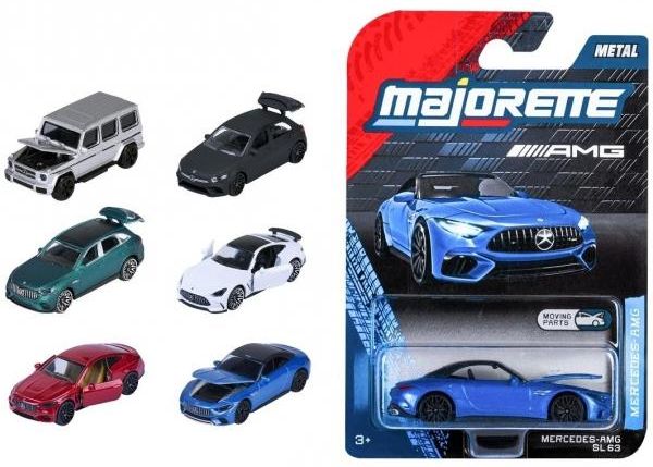 Majorette Pojazdy Mercedes-AMG Premium, 6 rodz. Metalowe pojazdy na licencji Mercedes-AMG, bez napędu, otwierane elementy, pracujące zawieszenie. Długość: 7,5 cm, skala 1:64, 3l+