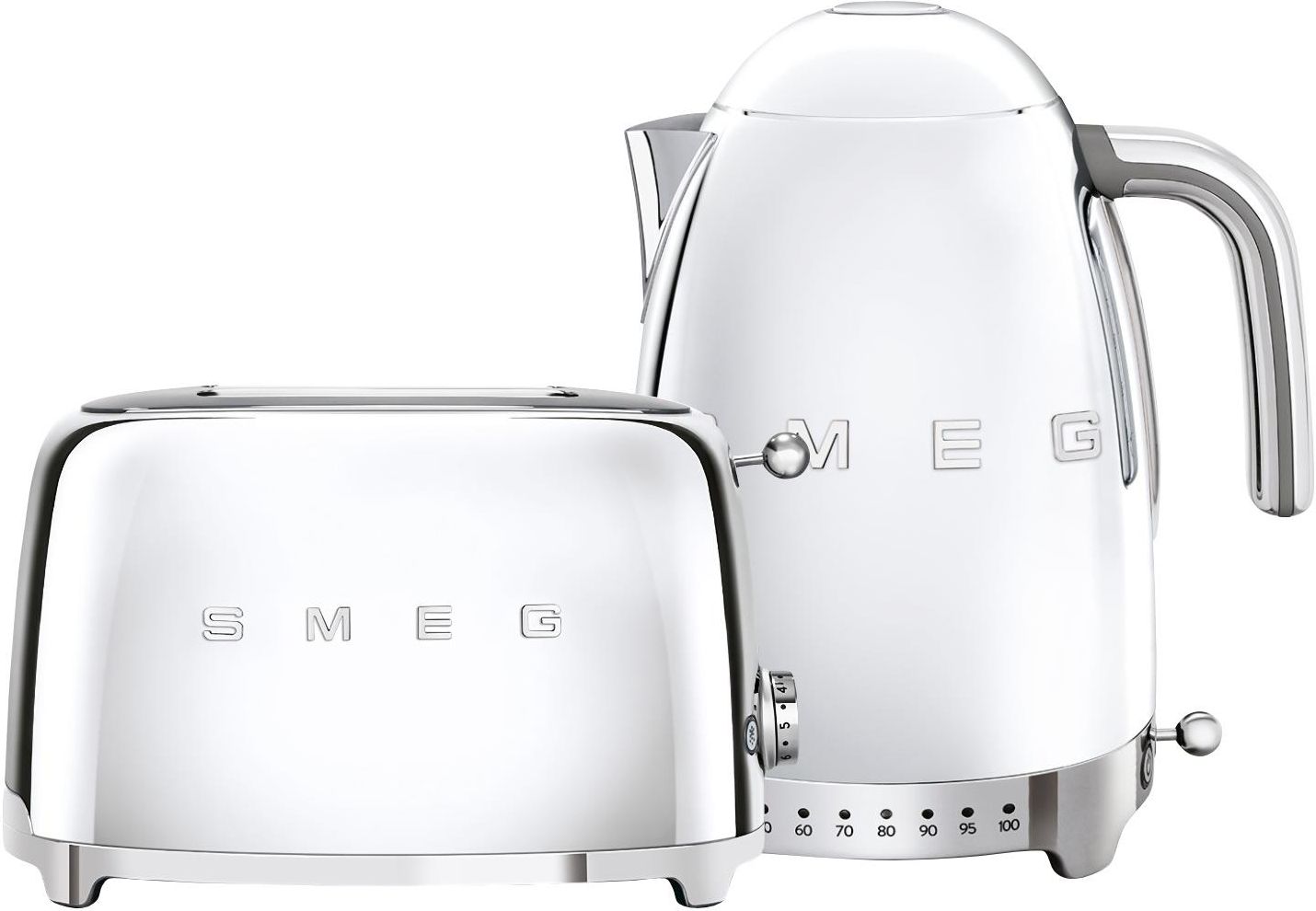 Zestaw śniadaniowy z KLF04 50's Retro Style Oferowany zestaw śniadaniowy produktów z linii 50’s Retro Style marki Smeg ułatwi i przyśpieszy przygotowywanie codziennych posiłków. Wykonane z wysokiej jakości materiałów - m.in. tworzywa i stali nierdzewnej - urządzenia mają przemyślany design o opływowych kształtach i chromowanych podstawach, który w połączeniu ze srebrnym kolorem sprawia, że świetnie zaprezentują się one na blacie kuchennym - można je będzie przechowywać na widoku, gdy akurat nie będą używane. Czajnik o pojemności 1,7 L z pokrywką otwieraną przy użyciu systemu Soft Opening posiada w swoim wnętrzu bezpieczny i praktyczny system grzewczy z ukrytymi elementami grzewczymi. Bezpieczeństwo użytkowania zapewniają automatyczne wyłączanie się po zagotowaniu wody, brak możliwości uruchomienia przy pustym zbiorniku oraz antypoślizgowe, gwarantujące stabilność nóżki. Dodatkowo urządzenie posiada przycisk regulacji temperatury, dzięki któremu można uruchomić próg grzania od minimum 50 do maksimum 100°C, co pozwoli na dostosowanie temperatury wody do własnych potrzeb. Przycisk Keep warm umożliwi z kolei utrzymanie ciepła wody na dłużej - wodę będzie można ugotować wcześniej i poczekać z obsłużeniem gości na odpowiedni moment. Ponadto czajnik wyposażony został w wyjmowany filtr wapienny ze stali nierdzewnej, który ogranicza osadzanie się kamienia w jego wnętrzu. Zaletą produktu jest także podstawa umożliwiająca obracanie w zakresie 360 stopni. Zalety czajnika: Otwieranie pokrywki z systemem Soft Opening  Antypoślizgowe nóżki stabilizujące urządzenie Regulacja temperatury wody od 50 do 100°C Funkcja Keep warm - utrzymywanie ciepła na dłużej Wyjmowany filtr wapienny ze stali nierdzewnej Automatyczne wyłączenie przy 100°C Automatyczne wyłączenie przy pustym czajniku Obracanie czajnika na podstawie 360° Toster na dwie kromki posiada komory o szerokości 36 mm. Pieczywo automatycznie umieszczane jest na ich dnie oraz automatycznie wysuwane po zakończeniu cyklu opiekania, co przyspiesza przygotowywanie tostów. Sześciostopniowa regulacja daje możliwość kontroli poziomu opiekania. Natomiast trzy programy pracy pozwalają na podgrzewanie kromek, rozmrażanie pieczywa oraz przygotowywanie bajgli, co zwiększa zastosowania tostera. Zainstalowana wewnątrz, łatwa w opróżnianiu tacka zbiera okruchy, zapobiegając powstawaniu niepotrzebnego bałaganu wokół urządzenia. Funkcje tostera: 6 stopni opiekania 3 programy: podgrzewanie, rozmrażanie, bajgiel