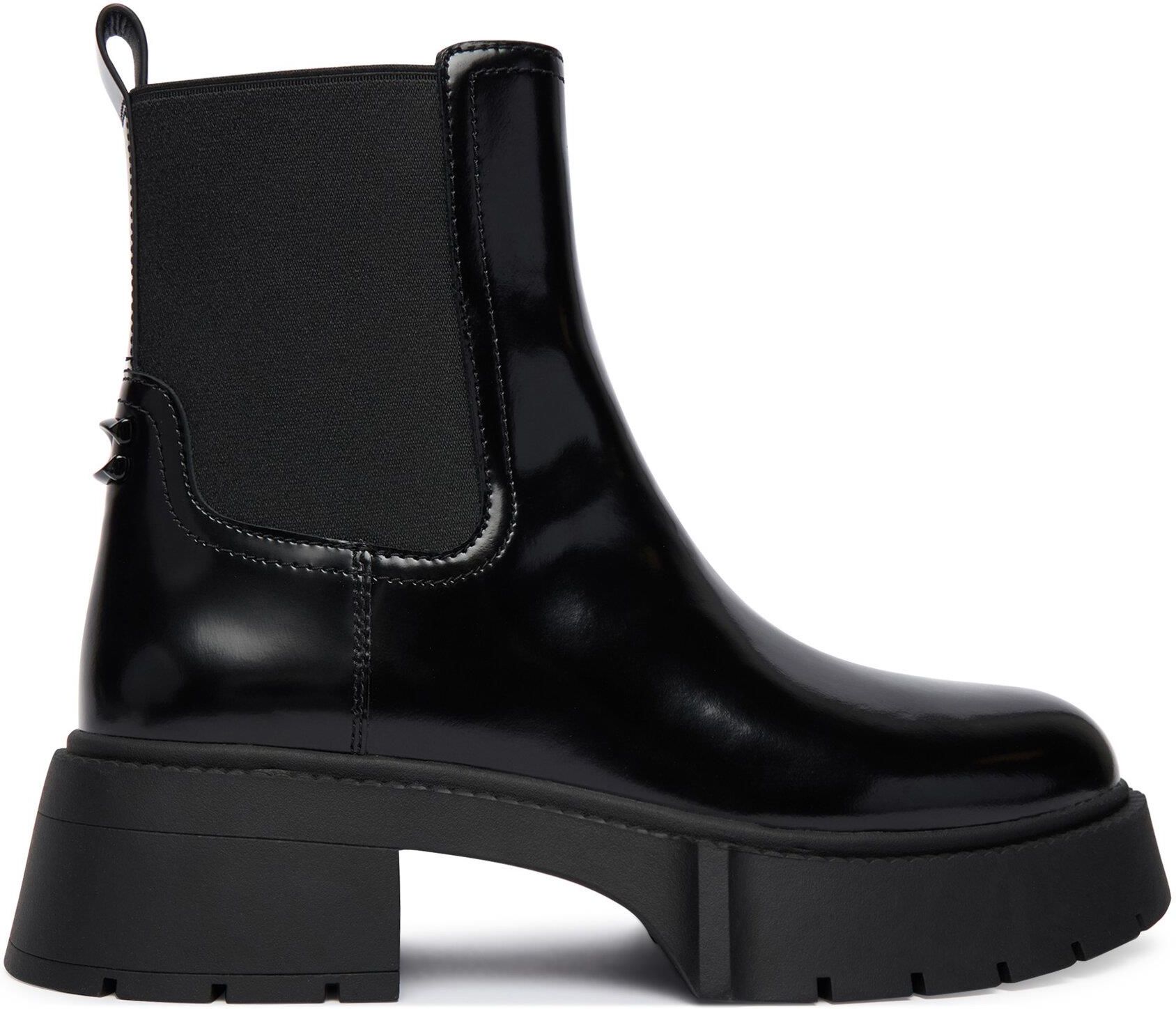 Podkreśl swój styl dzięki wyjątkowym, damskim sztybletom marki Coach! Wykonane z lakierowanej skóry naturalnej, łączą elegancję z nowoczesnym designem. Wsuwane, z gumowym klinem w cholewce, gwarantują łatwość zakładania i doskonałe dopasowanie. Okrągły nosek nadaje im klasycznego charakteru, a …