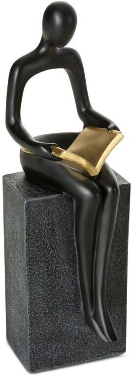 Figurka RICO wykonana z żywicy poliestrowej, przedstawiająca siedzącego mężczyznę trzymającego złotą książkę, to elegancki i artystyczny element dekoracyjny.