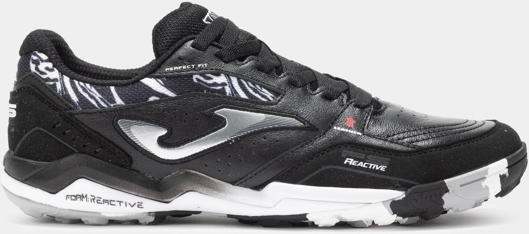 Buty Joma FS Reactive 2501 TF FSS2501TF Buty piłkarskie na murawę (nawierzchnie syntetyczne i dywan). Model FS Reactive został opracowany z myślą o piłkarzach poszukujących najnowocześniejszej technologii i wysokiej wydajności. Wysokiej jakości materiały sprawiają, że te trampki znajdują się na szczycie katalogu piłki nożnej i futsalu firmy Joma. W rzeczywistości są one testowane przez profesjonalnych graczy, takich jak F. Valerio i Lucao. Cechy Cholewka wykonana głównie ze skóry. Materiał ten jest idealny do tego sportu ze względu na swoją trwałość, elastyczność, oddychalność i dobry kontakt z piłką. Wzmocniona wentylacja z technologią VTS. Wzmocnienie PROTECTION na palcach. Podeszwa środkowa skomponowana w tylnej dolnej części w technologii FOAM REACTIVE. Jego doskonała zdolność pochłaniania uderzeń zmiękcza krok i zapewnia wyjątkowy komfort. Górna część wykonana jest z filonu o dużej gęstości, aby była bardziej stabilna. TRWAŁOŚĆ: gumowa podeszwa o wysokiej odporności na ścieranie, zużycie i przyczepność na powierzchni. Posiada konstrukcję z wieloma kołkami, która minimalizuje nacisk na krok, zapewniając dobre wsparcie.