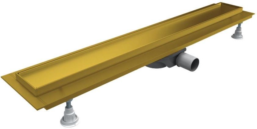 Odpływ Liniowy Senti Blanca Złoty Do Wyklejenia Płytką 70x8x7 Kmpl70zbl marki Senti to najwyższej jakości produkt łączący w sobie funkcjonalność, trwałość oraz estetykę. Ruszt odpływu przeznaczony jest do wyklejenia płytkami podłogowymi o grubości do 12 mm. Dzięki temu odpływ staje się niemal całkowicie niewidoczny, dając efekt jednorodnej podłogi na całej powierzchni. Satynowe złote wykończenie odpływu doskonale sprawdzi się przy płytkach ze wzorem kamiennym w ciepłych odcieniach beżu, miodowym drewnem, jak również pięknie podkreśli wzór Calacatta Gold. Odpływ Blanca charakteryzuje bardzo wysoka przepustowość wody, na poziomie 42 l/min zapewnia jej skuteczne odprowadzanie przy intensywnym użytkowaniu, doskonale sprawdzi się w parze nawet z największymi deszczownicami dostępnymi na rynku. Syfon odpływu wyposażony jest w dodatkowe sitko uniemożliwiające większym elementom przedostanie się do instalacji wodnej. Sitko można łatwo wyjąć od góry, opróżnić i umyć pod bieżącą wodą. Konstrukcja syfonu pozwala na jego obrót o 360ᵒ umożliwiając wygodne i dokładne spasowanie z instalacją wodną. Regulowana wysokość i szerokość rozstawu nóżek pozwalają na łatwe umiejscowienie i wypoziomowanie odpływu. Produkt wykonany jest z wytrzymałego aluminium, odpornego na zginanie i nacisk nawet 300 kg. Materiał poddano dodatkowo procesowi anodowania, co zapewnia odporność na korozję oraz trwałość na długie lata użytkowania. Odpływy z serii Blanca produkowane są w Polsce i objęte 5-letnią gwarancją producenta. Zestaw zawiera: aluminiową rynnę odwodnieniową, ruszt do wyklejenia płytkami w kolorze złotym, syfon obrotowy z funkcją łatwego czyszczenia, regulowane pionowo i poziomo nóżki montażowe, membranę uszczelniającą.