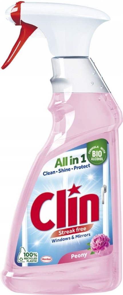 Clin Peony Spray 500ml płyn do szybPłyn do mycia okien i powierzchni szklanych z formułą All in 1 oraz naturalnym Bio-Alkoholem. Skutecznie usuwa tłuszcz i zabrudzenia, zapewnia idealny połysk bez smug oraz pomaga chronić powierzchnię przed ponownym osadzaniem się brudu i wody. Najważniejsze cechy:do okien, luster i innych powierzchni szklanych,formuła z naturalnym Bio-Alkoholem,czyści, nabłyszcza i chroni,skutecznie usuwa tłuszcz i brud,długotrwały połysk bez smug,pomaga zapobiegać przywieraniu wody i zabrudzeń,świeży zapach Peony,butelka w 100% z plastiku z recyklingu.