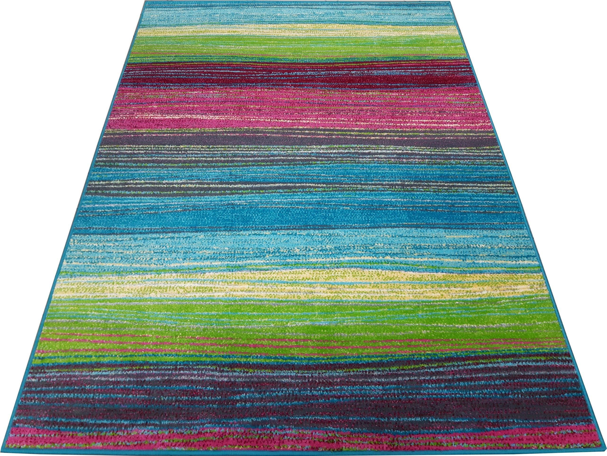 Nowoczesny dywan do salonu oraz sypialni. Posiada piękne tęczowe barwy. Dywan pokojowy dziecięcy, paski. Kolorowy. Nowoczesny dywanz kolekcjiAgnella FUNKYw magnetyzujące i kolorowe pasy z przewagą barwy szmaragdowej. Dywan zrobi wrażenie nie tylko w pokoju dziecięcym,w młodzieżowym wnętrzu także …