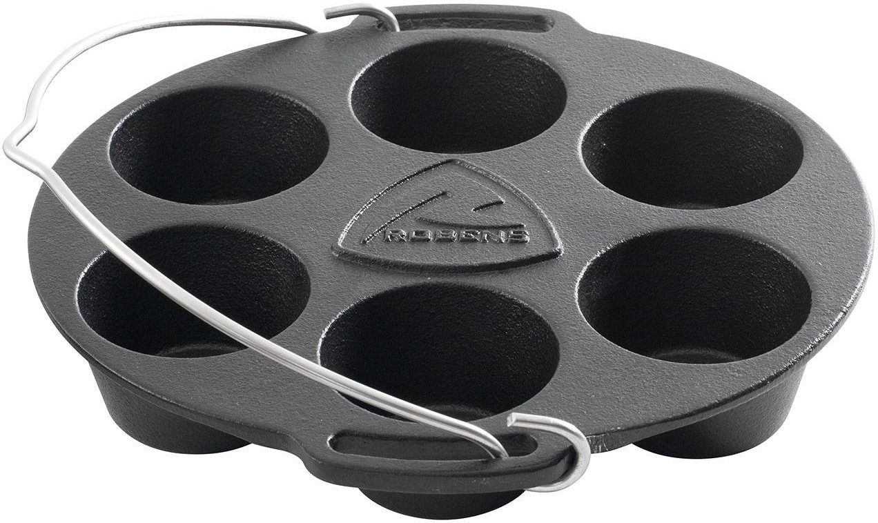 Forma do pieczenia Robens Carson Baking Tin w kolorze czarnym z praktycznym uchwytem do zawieszenia nad ogniem pozwoli Ci cieszyć się smakiem pieczonych potraw domowych, ale dla odmiany na świeżym powietrzu. Foma jest idealnie dopasowana do kociołków Carson (4,3, 8,2 i 11,3 l) i umożliwia wszechstronne gotowanie podczas biwaków i wycieczek o tematyce bushcraftowej czy outdoorowej. Dzięki temu sprytnemu rozwiązaniu zyskasz nowe możliwości kulinarne w plenerze. Przy pieczeniu zaleca się stosowanie odpowiedniej podstawki dystansującej od dna naczynia. Cechy formy do pieczenia Robens Carson Bakin Tin Idealne rozwiązanie na camping: Przenośny format jest niezastąpiony podczas wypadów na łono natury. Wszechstronne zastosowanie: Umożliwia pieczenie muffinek, jajek i bułeczek, tak jak ma to miejsce w piekarniku. Umożliwia wygodne gotowanie nad ogniskiem: Formę wyposażono w specjalny uchwyt do zawieszenia. Trwałość i równomierne pieczenie: Wykonany z wysokiej jakości żeliwa, które doskonale trzyma ciepło. Kompatybilność z kociołkami Carson: Pasuje do modeli o pojemności 4,3, 8,2 oraz 11,3 L. Umożliwia testowanie nowych możliwości kulinarnych: Rozszerza funkcjonalność Twojego kociołka w terenie. DANE TECHNICZNE Dane dodatkowe Kolor: czarny Typ materiału: żeliwo Informacje producenta Producent: Robens, Dania