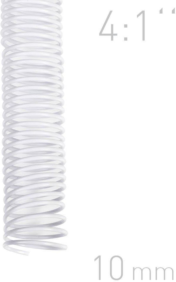 KOLOR BIAŁY Grzbiety spiralne do bindowania 4:1 - 10mm - 100 sztuk OPUS Spirala profilowana z tworzywa PCV zakładana na otwory o skoku 4:1" , format A4 / 49 pętli. Estetyczny wygląd i wygoda użytkowania dokumentów oprawionych tą metodą, stawiają ją na czele nie tylko w domu i biurze, ale także w podróży, Łatwość czytania, przeglądania i kopiowania przez obracane o 360 stopni kartki decydują o jej funkcjonalności. Tak dziś wyglądają nowoczesne atlasy, przewodniki turystyczne, notatniki i zeszyty. Jednostka sprzedaży - 1 opakowanie - 100 sztuk z jednego rozmiaru i koloru Zasady doboru średnicy do ilości oprawianych kartek: spirala 6mm - 30 kartek spirala 8mm - 50 kartek spirala 10mm - 70 kartek spirala 12mm - 90 kartek spirala 14mm - 110 kartek spirala 16mm - 130 kartek spirala 20mm - 160 kartek . . .