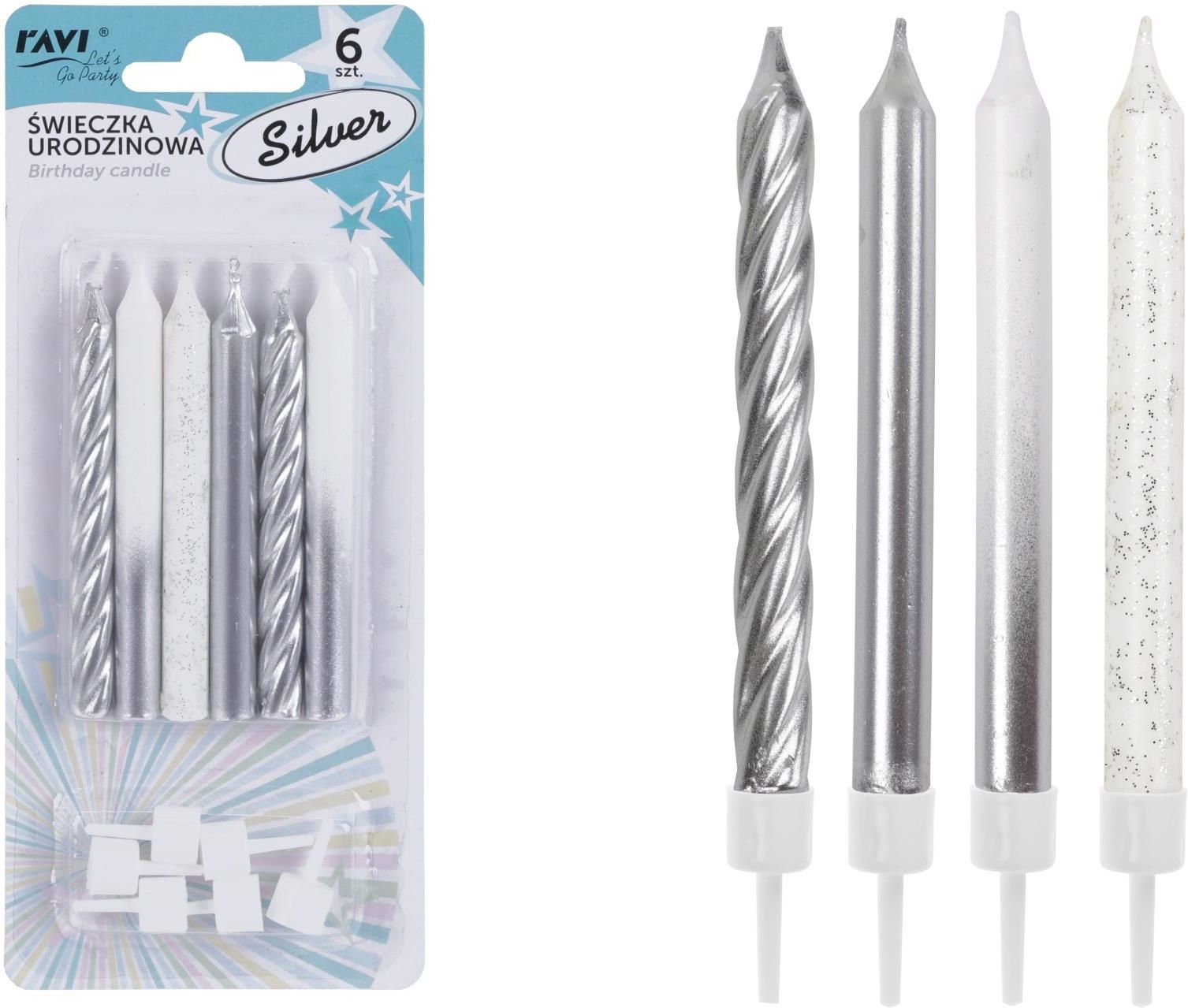 Ravi Świeczki Urodzinowe Silver 6Szt. Leśnica