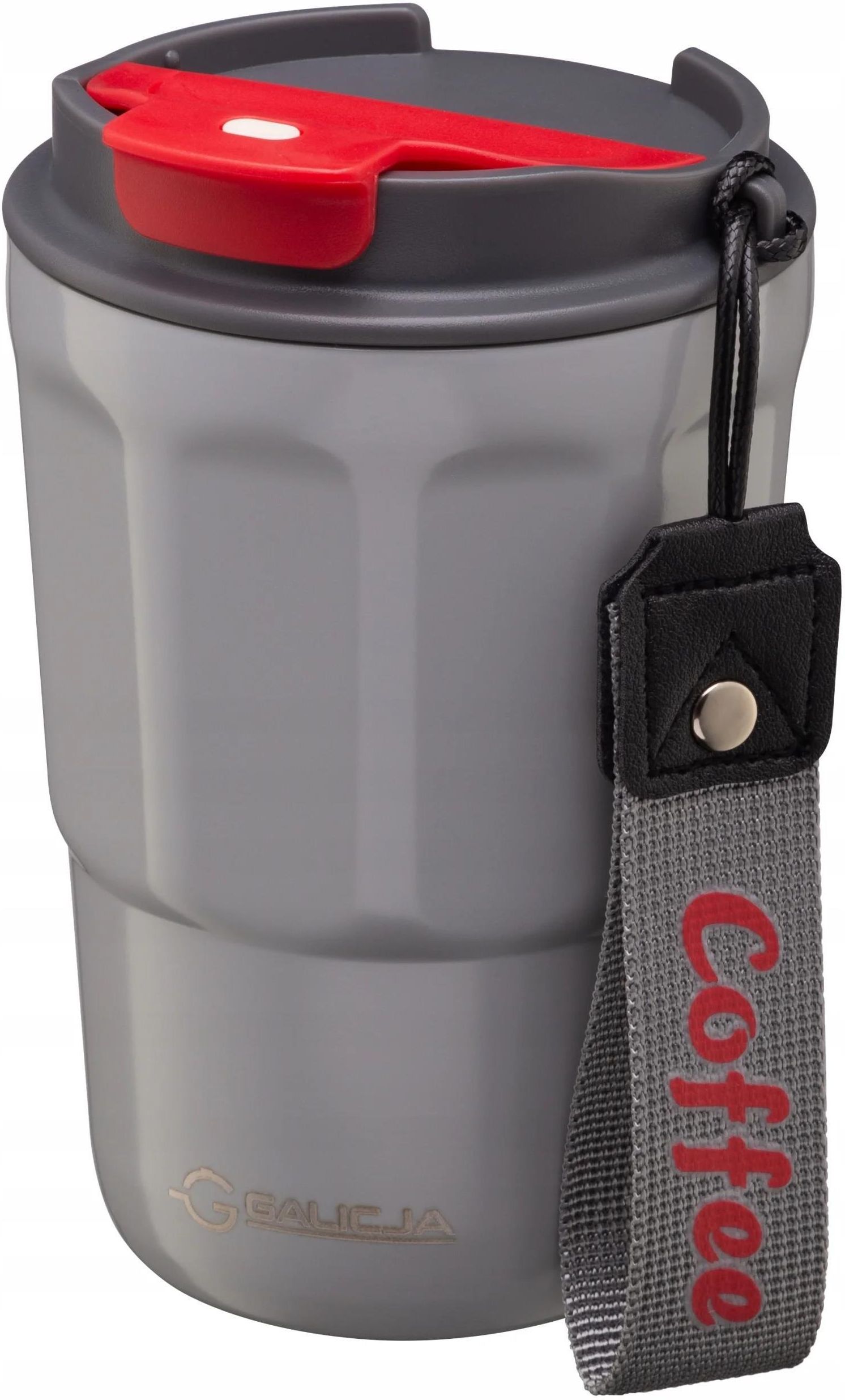 Kubek termiczny bidon COFFEE 350 ml stal nierdzewna 18/10 tworzywo szary z czerwonym akcentem kubek termiczny Coffee został wykonany z wysokiej jakości stali nierdzewnej 18/10, zaś pokrywa z tworzywa sztucznego i silikonowych uszczelek posiada podwójne ścianki izolowane próżniowo, które dobrze utrzymują temperaturę specjalnie skonstruowany i wyprofilowany ustnik pozwala na swobodne picie napoju bez ryzyka oblania się szczelna pokrywa (klapka) zamykana na zatrzask i otwierana do góry (słychać kliknięcie podczas zamykania i otwierania) antypoślizgowy spód sprawia, że kubek nie ślizga się po powierzchni na której go postawimy bardzo łatwe uzupełnianie kubka, wystarczy odkręcić pokrywę, wlać do środka ulubioną kawę czy herbatę i ponownie zakręcić kubek Coffee jest przeznaczony zarówno do ciepłych jak i zimnych napojów jest bardzo łatwy w utrzymaniu czystości, ale nie można myć go w zmywarce do pokrywy kubka przyczepiona jest krótka smycz z napisem "Coffee", która ułatwia korzystanie z kubka podczas podróży czy spaceru wygodny w użytkowaniu, nietłukący, odporny na wstrząsy oryginalny kształt i stosunkowo niewielki rozmiar sprawiają, że kubek idealnie nadaje się w podróży, na wycieczce, w drodze do pracy czy szkoły, a nawet na spacerze nie nadaje się do podgrzewania w kuchence mikrofalowej kolor: szary z czerwonym akcentem pojemność: 350 ml wymiary: wysokość całkowita 14,3 cm, średnica całkowita 9 cm wysokość samego kubka bez zakrętki 12,3 cm, średnica podstawy 7 cm, średnica samego kubka bez zakrętki 8,8 cm, średnica otworu po zdjęciu zakrętki 7,5 cm produkt marki Galicja Przedmiotem oferty jest kubek w kolorze szarym, a ostatnie zdjęcie ma jedynie charakter poglądowy, mający na celu pokazanie jak wygląda kubek z otwartym ustnikiem. Możliwe są niewielkie odchylenia pomiarowe, ponieważ pomiary są dokonywane ręcznie. Kolor produktu na zdjęciu może nieznacznie różnic się od koloru w rzeczywistości, ze względu na różne efekty oświetlenia podczas robienia zdjęć oraz różne ustawienia wyświetlacza telefonu czy ekranu monitora.