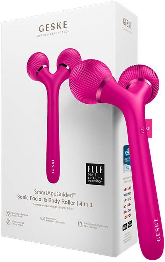 Roller soniczny do twarzy i ciała 4w1 Geske z Aplikacją (magenta) Geske Roller soniczny do twarzy i ciała 4w1 Geske z Aplikacją (magenta) Podaruj sobie chwile relaksu, na które zasługujesz! Roller soniczny 4w1 Geske to innowacyjne rozwiązanie dla każdego rodzaju skóry. Technologia SmartSonic z 8000 pulsacjami dźwiękowymi pozwala cieszyć się przyjemnym masażem ciała, dzięki któremu zaznasz błogiego odprężenia po ciężkim dniu. Dzięki wykorzystaniu technologii konturowania ciała 3D oraz fal ujędrniających roller niweluje napięcia, zmniejsza opuchliznę oraz przywraca skórze promienny wygląd. Do Twojej dyspozycji jest również dedykowana aplikacja, która sprawi, że codzienna pielęgnacja stanie się jeszcze przyjemniejsza i efektywniejsza. Zrelaksuj ciało i przywróć skórze blask Roller to harmonijne połączenie innowacyjnych rozwiązań, które przywrócą Twojej skórze dawny, zdrowy blask. Urządzenie wykorzystuje technologię SmartSonic, która generuje aż 8000 pulsacji dźwiękowych na minutę, zapewniając delikatny, relaksujący masaż Twojego ciała. Z pomocą rollera sonicznego Geske złagodzisz napięcia mięśniowe, ujędrnisz skórę, zmniejszysz widoczność zmarszczek mimicznych, a także poprawisz kontur twarzy! Odkryj moc innowacyjnych technologii To jednak nie wszystko, co ma do zaoferowania roller! Technologia konturowania ciała 3D w połączeniu z falami ujędrniającymi łagodzi napięcia i odpręża ciało, jednocześnie skutecznie redukując opuchliznę. Dzięki temu Twoje ciało będzie wymodelowane, a skóra stanie się napięta, jędrna, wygładzona i promienna. Roller soniczny Geske to kompleksowe rozwiązanie dla piękna i zdrowia Twojej skóry! Wykorzystaj dedykowaną aplikację Wprowadź swoją pielęgnację skóry na wyższy poziom za pomocą dedykowanej aplikacji GESKE German Beauty Tech! Aplikacja dostępna jest w sklepie Google Play oraz App Store. Wykorzystując zaawansowaną technologię AI, aplikacja dokładnie analizuje stan Twojej skóry, uwzględniając jej typ, aktualny stan oraz potencjalne problemy. Na podstawie tej analizy tworzy spersonalizowany plan pielęgnacyjny, dopasowany do Twoich indywidualnych potrzeb. Znajdziesz w niej również wiele profesjonalnych poradników, które sprawią, że pielęgnacja będzie jeszcze łatwiejsza. ProducentGeskeNazwaSonic Facial & Body Roller 4 in 1ModelGK000041MG01KolorMagentaWodoodpornośćIPX5AplikacjaGESKE German Beauty Tech Ilość w kartonie: 18 szt. Net weight: 106 Box width: 11,80 Box height: 7,90 Box length: 20,00 Gross weight: 347 Rodzaj: Soniczny, Roller Zasilanie: Akumulatorowe HS Code: 9019101000 Kod producenta: GK000041MG01
