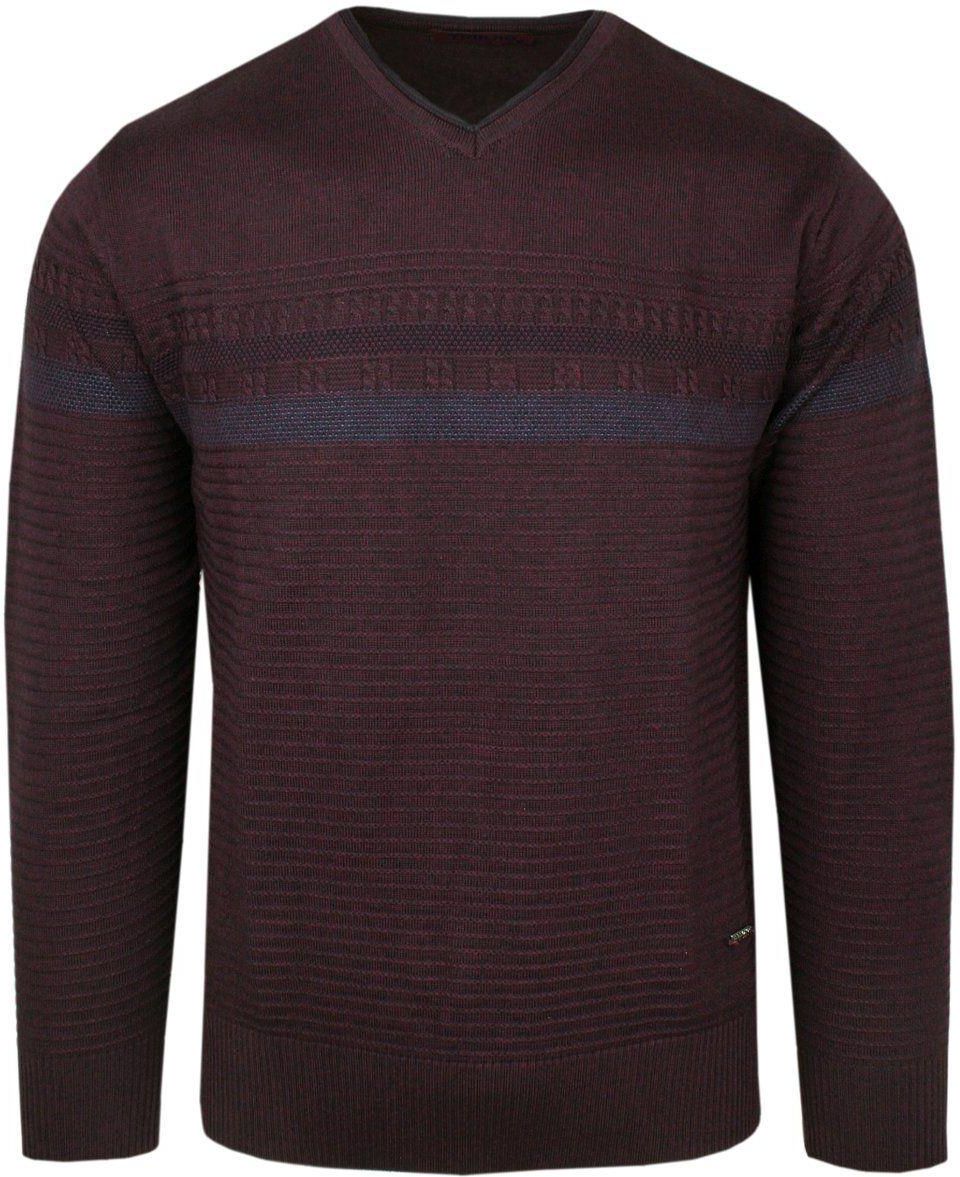 Elegancki Męski Sweter z Dekoltem w Serek (V-Neck) - Trikko - Bordowy SWKOWtrikko084bordoV Leżajsk