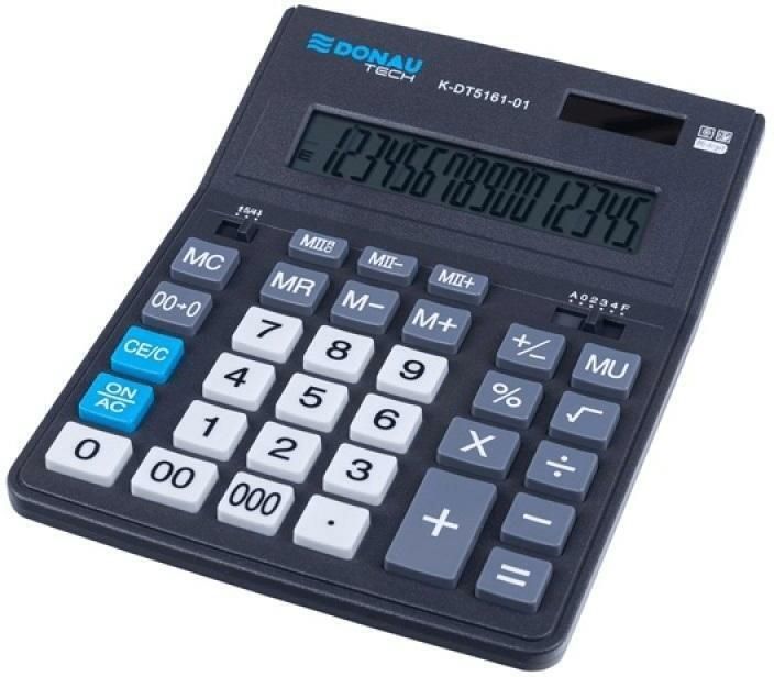 Kompaktowy Kalkulator Donau Tech z Funkcjami Pamięci i Obliczeń Procentowych – Wydajność na Co Dzień Ten kalkulator biurowy z 12-cyfrowym wyświetlaczem to niezawodne narzędzie do codziennych obliczeń w biurze. Dzięki podwójnemu systemowi zasilania – zarówno z baterii słonecznej, jak i standardowych baterii – jest zawsze gotowy do pracy, nawet w warunkach słabego oświetlenia. Kluczowe cechy Stały kąt nachylenia wyświetlacza zapewnia komfort użytkowania, ułatwiając odczyt wyników. Funkcje obliczeniowe: możliwość szybkiego obliczania pierwiastków kwadratowych oraz procentów. Funkcja pamięci pozwala na przechowywanie liczb podczas wykonywania obliczeń. Funkcja kasowania ostatniej pozycji daje możliwość szybkiego cofania błędów. Przycisk GT umożliwia sumowanie częściowych wyników, co przyspiesza procesy obliczeniowe. Przycisk z podwójnym zerem ułatwia wprowadzanie dużych liczb. Kompaktowe wymiary 137x101x30 mm sprawiają, że kalkulator jest łatwy do przechowywania na biurku, a jego elegancki design pasuje do każdego biura. Idealny wybór dla osób ceniących sobie precyzję, wygodę i efektywność pracy.