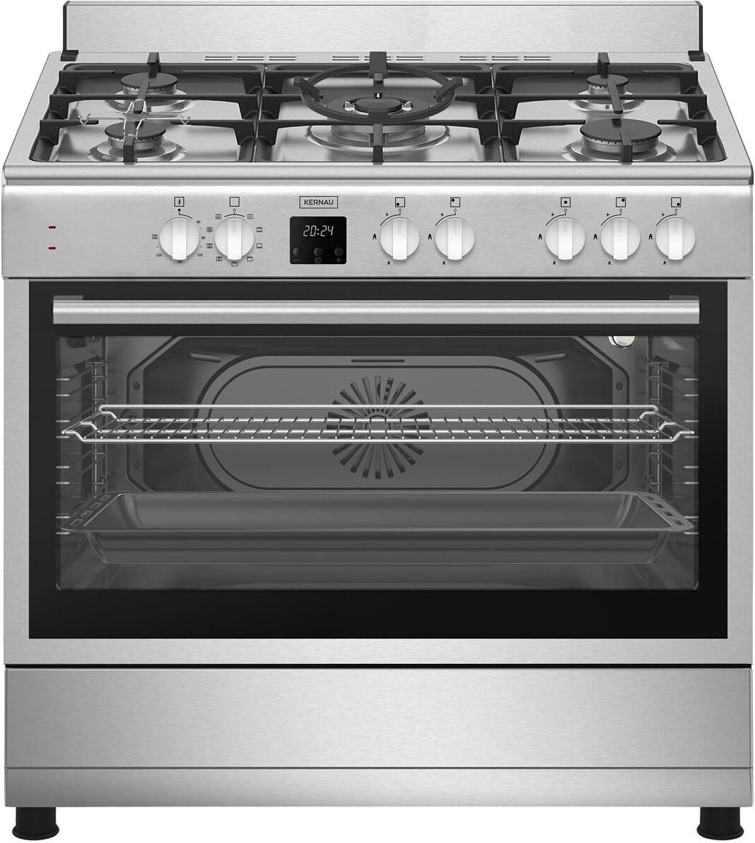 Wszechstronność i elegancja kuchni gazowo-elektrycznej Kernau KFC 90095 GE CI X Kuchnia gazowo-elektryczna Kernau KFC 90095 GE CI X to połączenie nowoczesnej technologii i estetyki, które doskonale wpasowuje się w różnorodne aranżacje kuchenne. Z szerokością 900 mm, ten model idealnie odpowiada potrzebom większych przestrzeni kuchennych, zapewniając użytkownikom dużą wygodę podczas przygotowywania posiłków. Kolor inox oraz srebrno-szary odcień sprawiają, że kuchnia wygląda stylowo i nowocześnie, a jednocześnie jest łatwa w utrzymaniu czystości. Płyta gazowa z pięcioma palnikami, w tym jednym WOK, umożliwia przygotowanie różnorodnych dań, nawet na dużych patelniach czy garnkach. Dzięki zastosowaniu pokrywy ze stali nierdzewnej, kuchnia zachowuje swój estetyczny wygląd przez długie lata. Model ten cechuje się także klasą efektywności energetycznej A, która pomaga w oszczędzaniu energii i obniżeniu kosztów eksploatacji. Zaawansowane funkcje piekarnika elektrycznego z termoobiegiem 3D Kuchnia gazowo-elektryczna Kernau KFC 90095 GE CI X oferuje zaawansowane funkcje piekarnika, które podnoszą komfort gotowania. Piekarnik elektryczny o pojemności 98 litrów wyposażony jest w termoobieg 3D, który zapewnia równomierne pieczenie potraw, niezależnie od ich wielkości. Dostępne programy, takie jak grill + wentylator czy turbo nagrzewnica, pozwalają na wybór idealnego sposobu przygotowania posiłku. Zakres temperatur od 40 do 240°C daje pełną swobodę przy pieczeniu, a możliwość korzystania z funkcji grillowania dodatkowo wzbogaca repertuar kulinarnej kreatywności. Piekarnik z trzema szybami w drzwiach skutecznie izoluje ciepło, co przekłada się na wyższą efektywność energetyczną i bezpieczeństwo użytkowania. Dodatkowe wyposażenie i wyjątkowe możliwości kuchni Kernau Kuchnia gazowo-elektryczna Kernau KFC 90095 GE CI X jest wyposażona w przydatne akcesoria, takie jak emaliowana blacha i ruszt, co ułatwia przygotowanie różnorodnych potraw. Żeliwny ruszt oraz zapalarka gazu zwiększają wygodę codziennego użytkowania i przyspieszają proces gotowania. Prowadnice teleskopowe oraz metalowe drabinki to dodatkowe udogodnienie, które znacząco usprawnia obsługę piekarnika, umożliwiając łatwe wkładanie i wyjmowanie naczyń. Urządzenie posiada także intuicyjne sterowanie za pomocą pokręteł i przycisków, wspierane przez wyświetlacz, co czyni obsługę niezwykle prostą i intuicyjną. Kernau KFC 90095 GE CI X to kuchnia, która spełnia oczekiwania nawet najbardziej wymagających użytkowników, oferując solidne wykonanie i nowoczesne rozwiązania technologiczne.ania nawet najbardziej wymagających użytkowników, oferując solidne wykonanie i nowoczesne rozwiązania technologiczne.