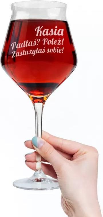 Kieliszek z grawerem - Padłaś poleż Zasługujemy na porządny odpoczynek, ale kogo nazwalibyśmy królową leżingu? Jeśli znasz osobę, która uwielbia odpoczywać podaruj jej kieliszek dla prawdziwego miłośnika relaksu. Dołącz tylko imię, a Twoja niespodzianka będzie jedyna w swoim rodzaju. Parametry pojemność: 420 ml wysokość: 20,6 cm szkło wysokiej jakości grawer techniką laserową Personalizacja Aby w pełni spersonalizować prezent, skorzystaj z naszego edytora. Wprowadź odpowiednie dane, a nasi graficy zajmą się resztą.